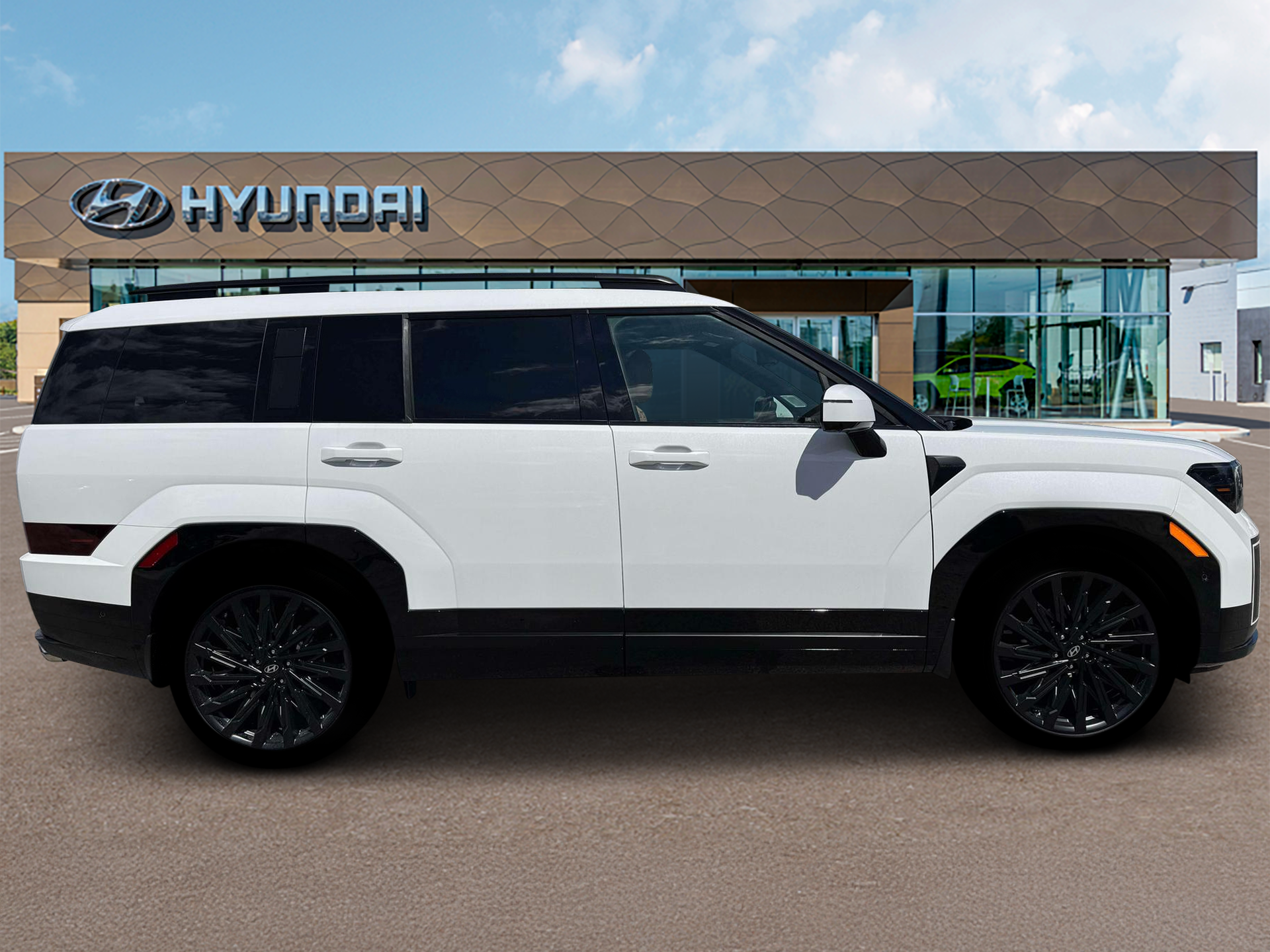 In-state Pricing Option Group 01, 12 Speakers, 3rd row seats: bench, 4-Wheel Disc Brakes, ABS brakes, Air Conditioning, Alloy wheels, AM/FM radio: SiriusXM, Apple CarPlay & Android Auto, Auto High-beam Headlights, Auto-dimming Rear-View mirror, Automatic temperature control, Brake assist, Bumpers: body-color, Cargo Net, Cargo Organizer, Carpeted Floor Mats, Delay-off headlights, Driver door bin, Driver vanity mirror, Dual front impact airbags, Dual front side impact airbags, Electronic Stability Control, Emergency communication system, Exterior Parking Camera Rear, First Aid Kit, Four wheel independent suspension, Front anti-roll bar, Front Bucket Seats, Front Center Armrest, Front dual zone A/C, Front reading lights, Fully automatic headlights, Garage door transmitter: HomeLink, Heads-Up Display, Heated and Ventilated Front Bucket Seats, Heated door mirrors, Heated front seats, Heated rear seats, Heated steering wheel, Illuminated entry, Knee airbag, Leather steering wheel, Low tire pressure warning, Memory seat, Navigation System, Occupant sensing airbag, Outside temperature display, Overhead airbag, Overhead console, Panic alarm, Passenger door bin, Passenger vanity mirror, Power door mirrors, Power driver seat, Power Liftgate, Power moonroof, Power passenger seat, Power steering, Power windows, Quilted Premium Nappa Leather Seat Trim, Radio: AM/FM/HD Bose Premium Audio System, Rain sensing wipers, Rear anti-roll bar, Rear side impact airbag, Rear window defroster, Rear window wiper, Remote keyless entry, Roadside Assistance Kit, Roof Rack Crossbars, Security system, Speed control, Speed-sensing steering, Split folding rear seat, Spoiler, Steering wheel mounted audio controls, Tachometer, Telescoping steering wheel, Tilt steering wheel, Traction control, Trip computer, Turn signal indicator mirrors, Variably intermittent wipers, Ventilated front seats, and Wheels: 21" x 8.5J Unique Dark Finish Alloy. New vehicle pricing includes all offers and incentives. Tax, Title and Tags not included in vehicle prices shown. All financing decisions are based on personal credit history. You may not qualify for the offers, incentives, discounts, or financing. Offers, incentives, discounts, or financing are subject to expiration and other restrictions. See dealer for qualifications and complete details. Please see dealer for details. Price includes: $1500 - Hyundai HMF Dealer Choice : $1500 discount and 5.39% APR for 24 months. $44.05 per $1000 financed. Available to well qualified buyers who finance through Hyundai Motor Finance. H704. Exp. 02/02/2026